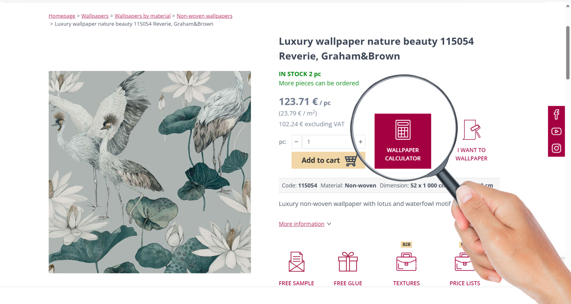 It is a simple online tool that you will find in our e-shop for each product. You just need to enter the width and height of the space you will be wallpapering, and the calculator will determine how many rolls of each wallpaper you will need. In the wallpaper calculator, you will also encounter these terms: