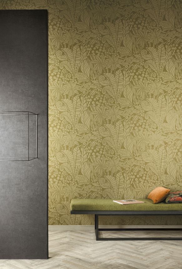 Non-woven wallpaper, leaves, blue, TER406, Terra, Masureel Non-woven wallpaper, leaves, blue, TER406, Terra, Masureel