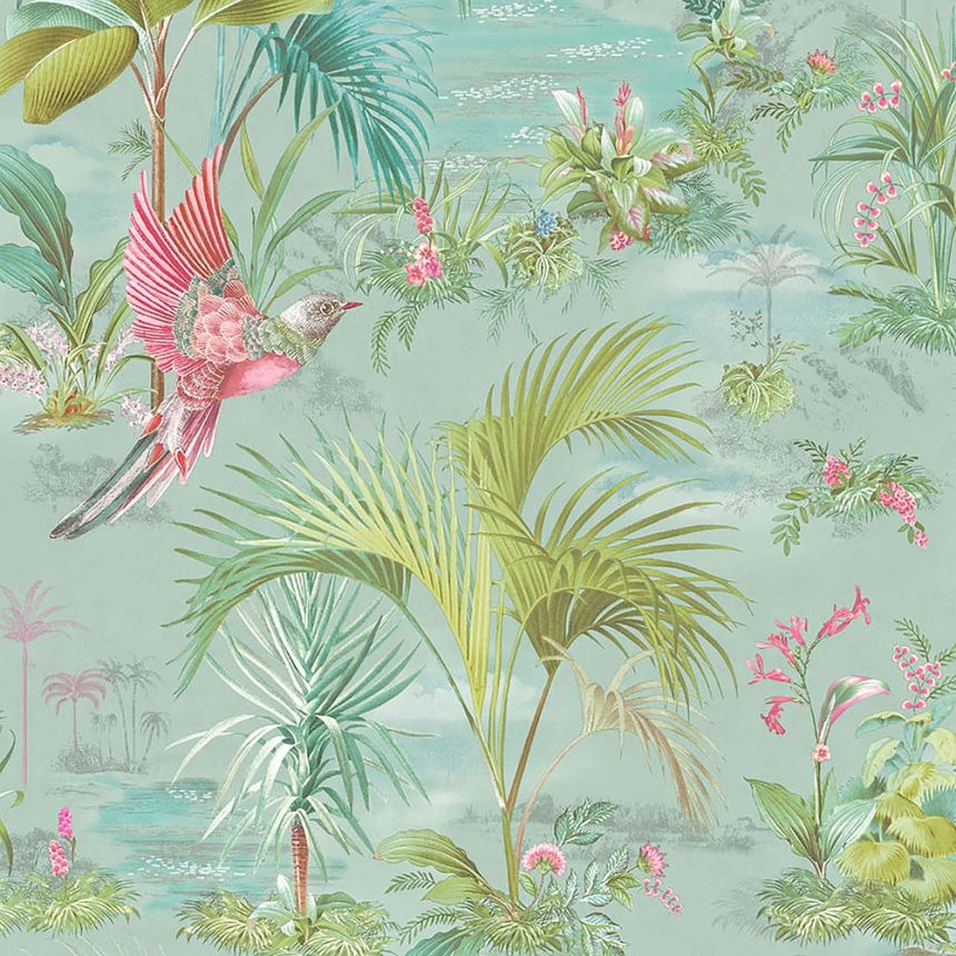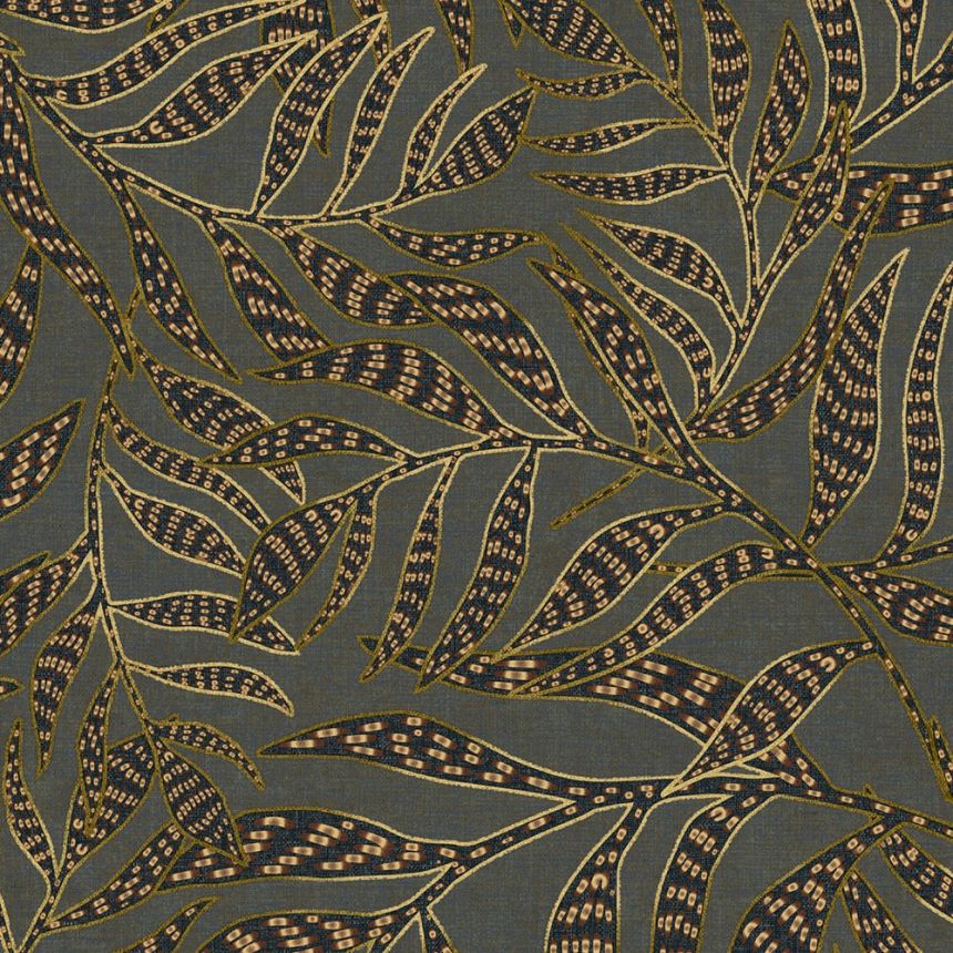 Non-woven wallpaper, leaves, blue, TER406, Terra, Masureel Non-woven wallpaper, leaves, blue, TER406, Terra, Masureel