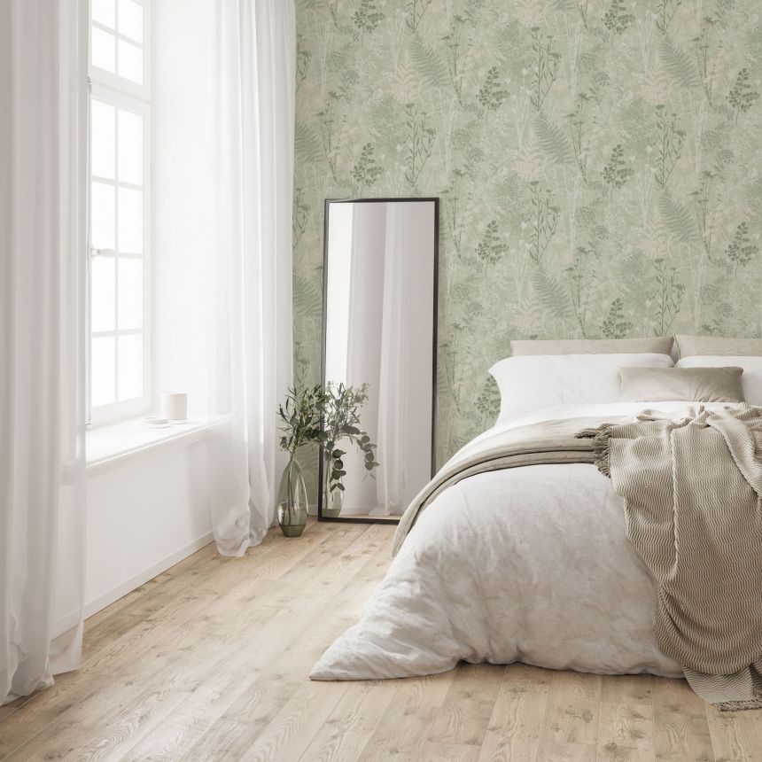 Green wallpaper, flowers and leaves, A63802, Vavex 2025 Green wallpaper, flowers and leaves, A63802, Vavex 2025