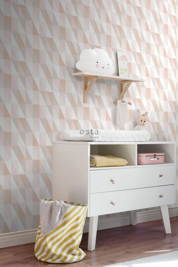 Non-woven wallpaper with pink and white triangles 128862, Little Bandits, Esta Non-woven wallpaper with pink and white triangles 128862, Little Bandits, Esta