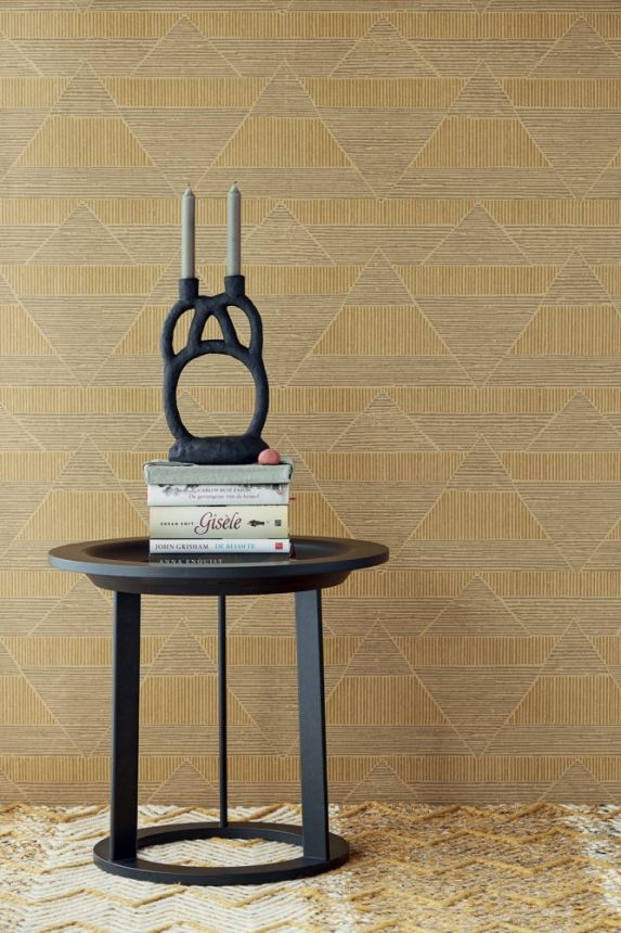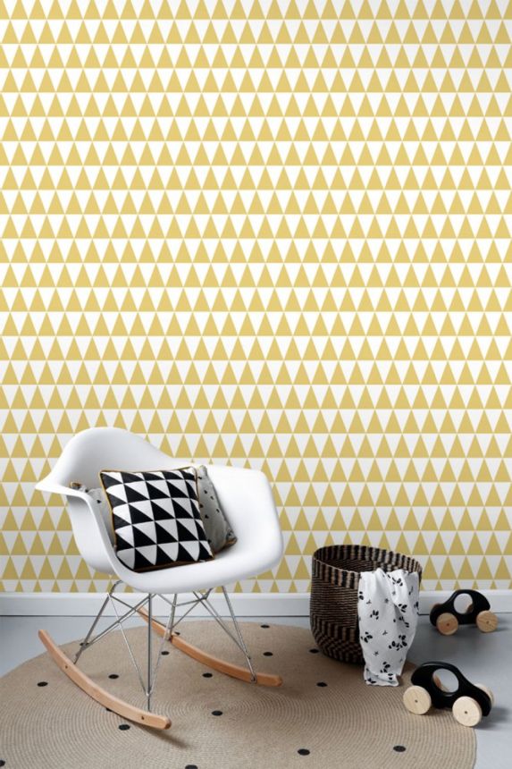 Non-woven wallpaper with ocher and white triangles 128863, Little Bandits, Esta Non-woven wallpaper with ocher and white triangles 128863, Little Bandits, Esta