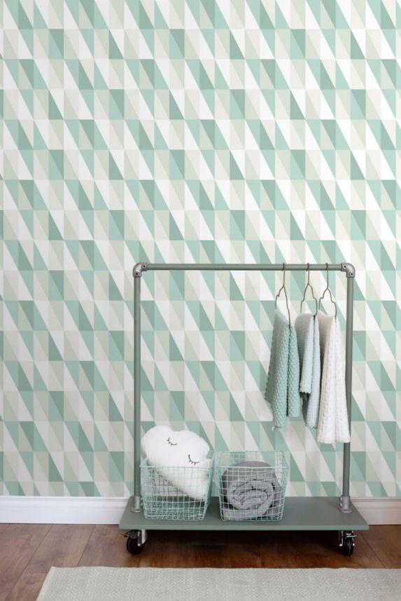 Geometric non-woven wallpaper, green-white triangles 138920, Little Bandits, Esta Geometric non-woven wallpaper, green-white triangles 138920, Little Bandits, Esta