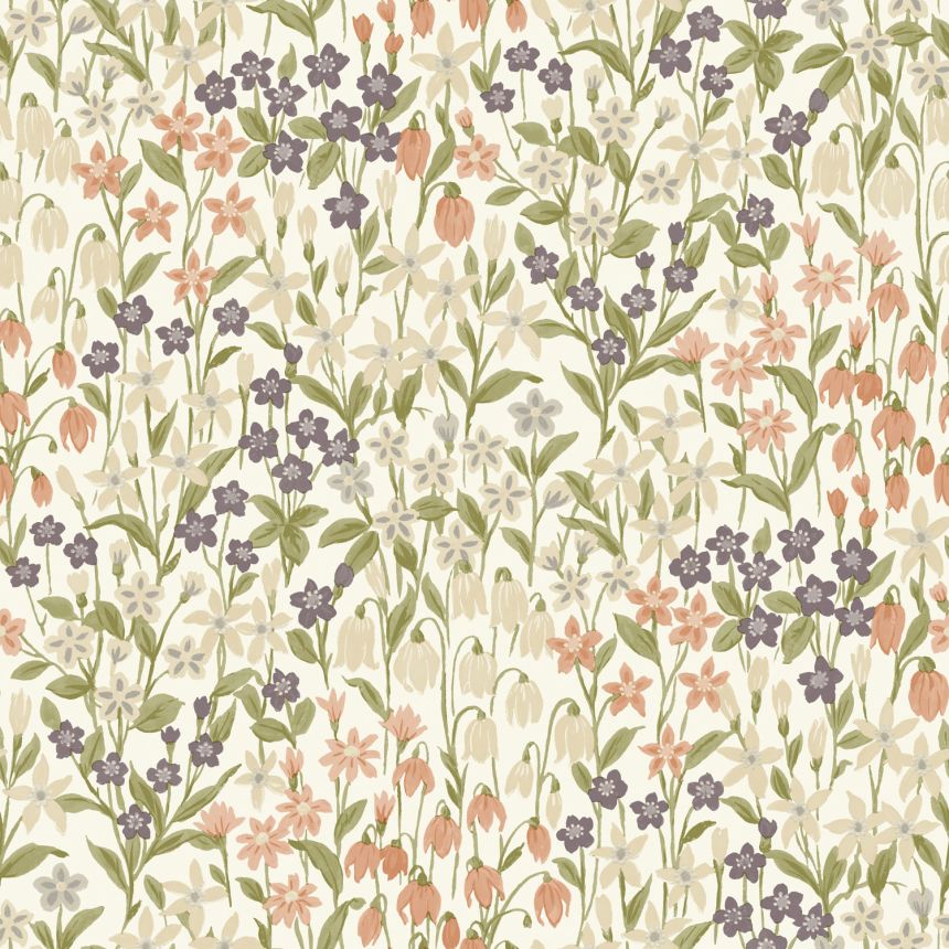 White wallpaper with colorful leaves, 121801, Vavex 2026 White wallpaper with colorful leaves, 121801, Vavex 2026