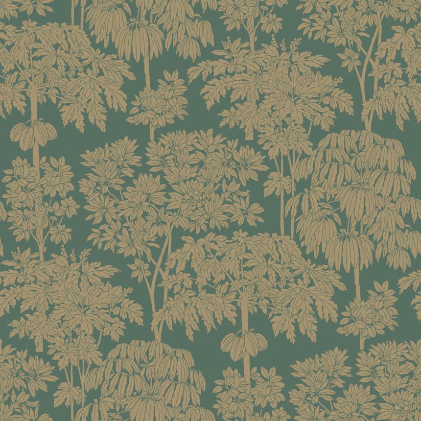 Green wallpaper with golden trees, A63403, Ciara, Grandeco Green wallpaper with golden trees, A63403, Ciara, Grandeco