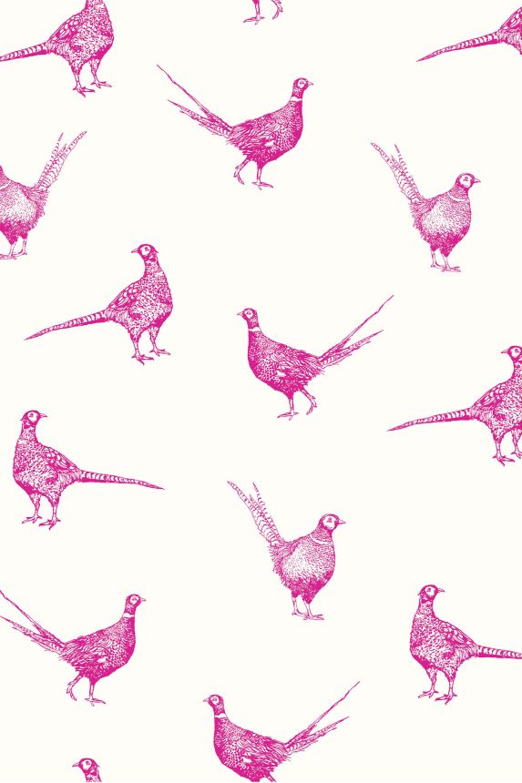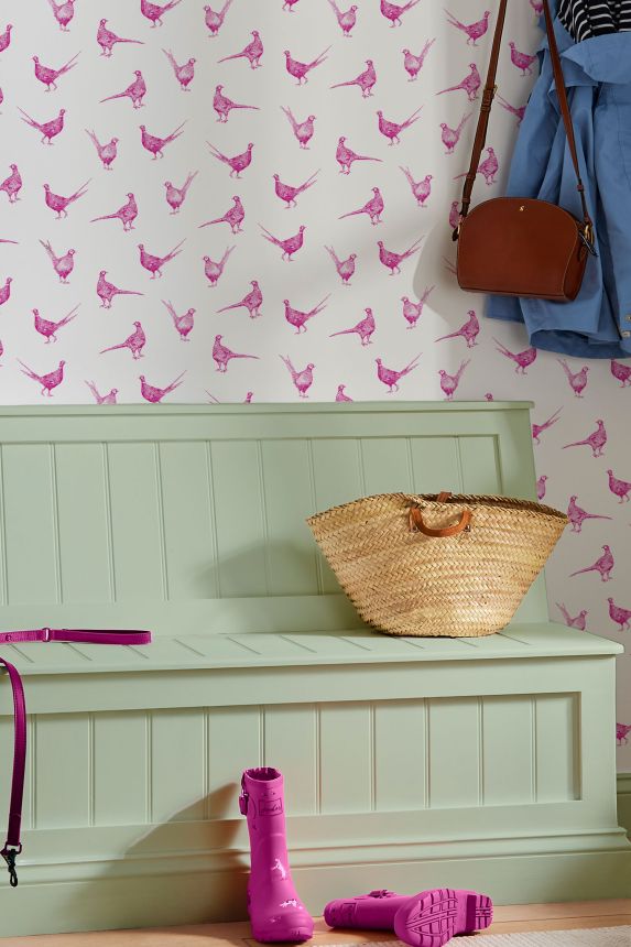 White-pink wallpaper with pheasants, 118551, Joules, Graham&Brown White-pink wallpaper with pheasants, 118551, Joules, Graham&Brown
