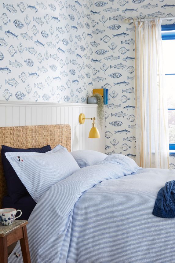White wallpaper with blue fish, 118554, Joules, Graham&Brown White wallpaper with blue fish, 118554, Joules, Graham&Brown