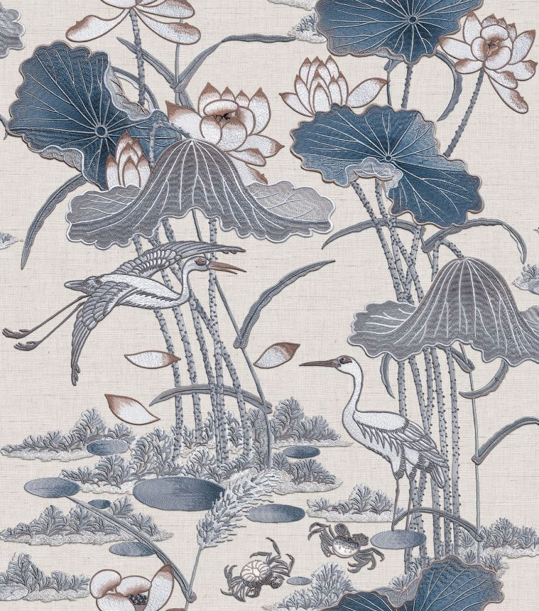 Luxury non-woven wallpaper, blue, birds, leaves, flowers, DE120016, Best Sellers, Design ID Luxury non-woven wallpaper, blue, birds, leaves, flowers, DE120016, Best Sellers, Design ID