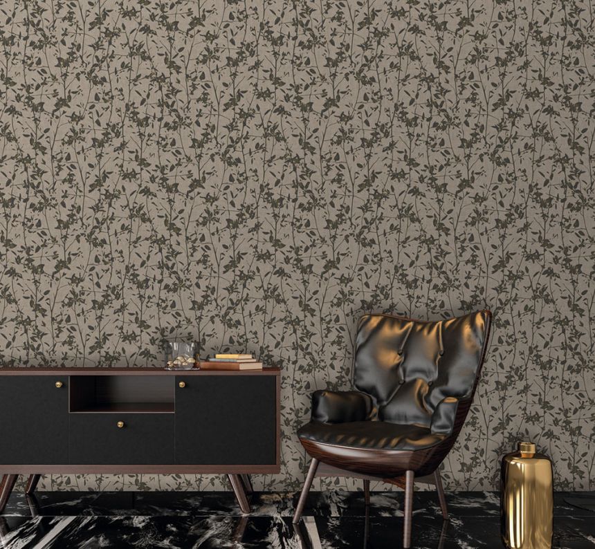 Gray-beige wallpaper with leaves, RE25150, Reflect, Decoprint Gray-beige wallpaper with leaves, RE25150, Reflect, Decoprint