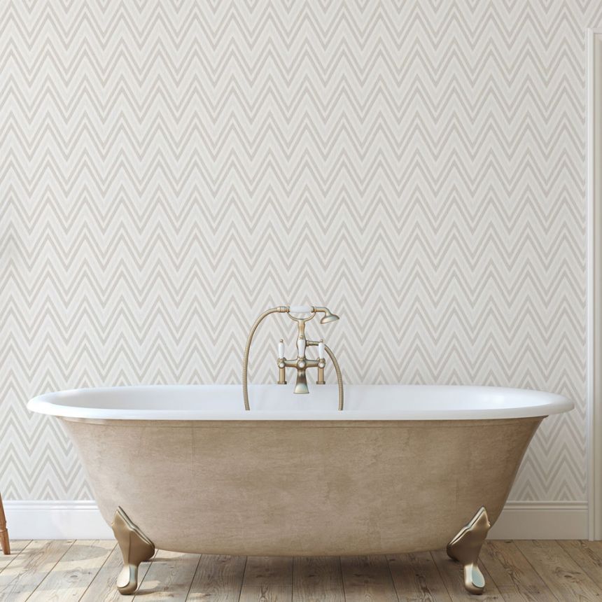Geometric non-woven wallpaper, beige, zigzag pattern, 1509-2, Vera, AdaWall Geometric non-woven wallpaper, beige, zigzag pattern, 1509-2, Vera, AdaWall
