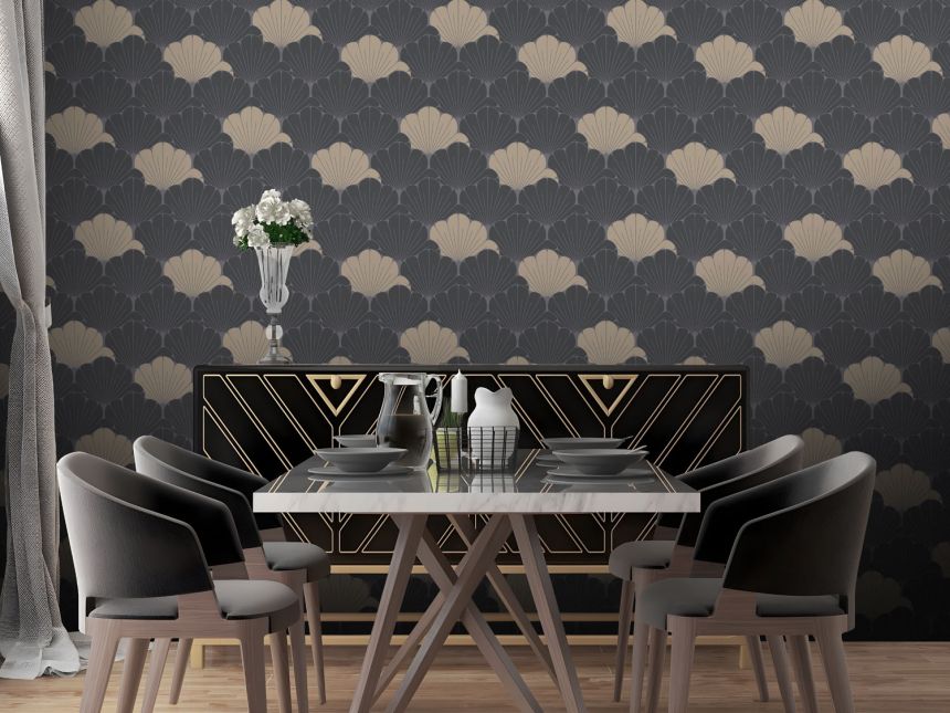 Non-woven wallpaper, black-gold, leaves, ROM103, Romance, Masureel Non-woven wallpaper, black-gold, leaves, ROM103, Romance, Masureel