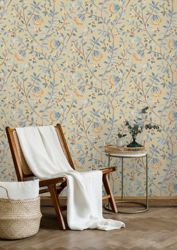 Blue wallpaper with flowers, leaves and butterflies, 118608, Envy Blue wallpaper with flowers, leaves and butterflies, 118608, Envy
