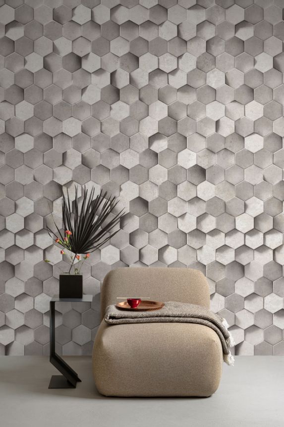 Geometric non-woven wall mural, grey, DGAMA3032-260, Amani, Masureel Geometric non-woven wall mural, grey, DGAMA3032-260, Amani, Masureel