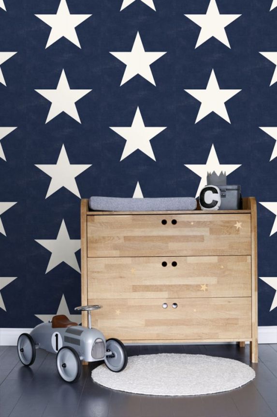 Dark blue non-woven wallpaper with white stars 136454, Regatta Crew, Esta Home Dark blue non-woven wallpaper with white stars 136454, Regatta Crew, Esta Home