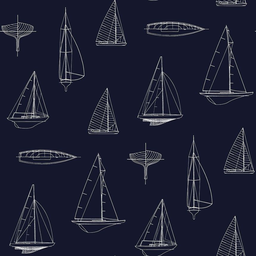Dark blue non-woven wallpaper with sailboats 136428, Regatta Crew, Esta Home Dark blue non-woven wallpaper with sailboats 136428, Regatta Crew, Esta Home