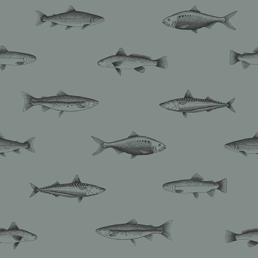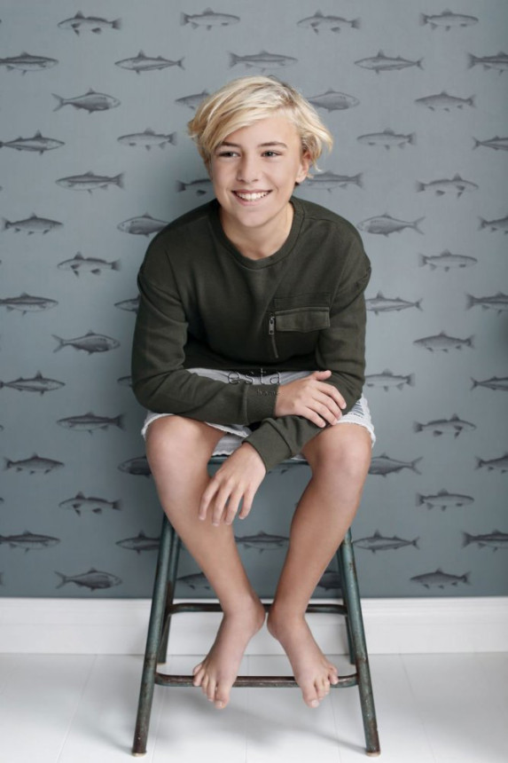 Teal non-woven wallpaper with black fish 128874, Regatta Crew, Esta Home Teal non-woven wallpaper with black fish 128874, Regatta Crew, Esta Home