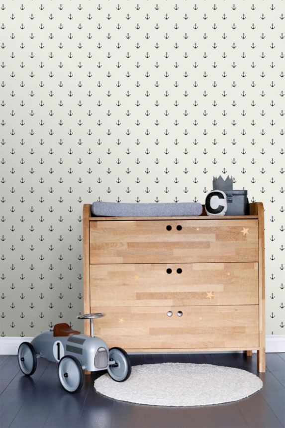 Natural non-woven wallpaper, black anchors 128873, Regatta Crew, Esta Home Natural non-woven wallpaper, black anchors 128873, Regatta Crew, Esta Home