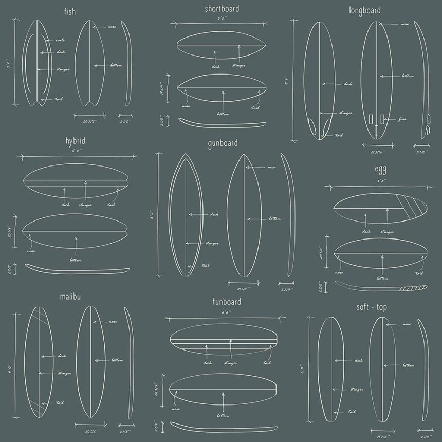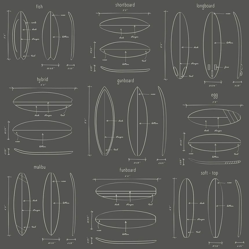 Black non-woven wallpaper with sketches of surfboards 128872, Regatta Crew, Esta Home Black non-woven wallpaper with sketches of surfboards 128872, Regatta Crew, Esta Home