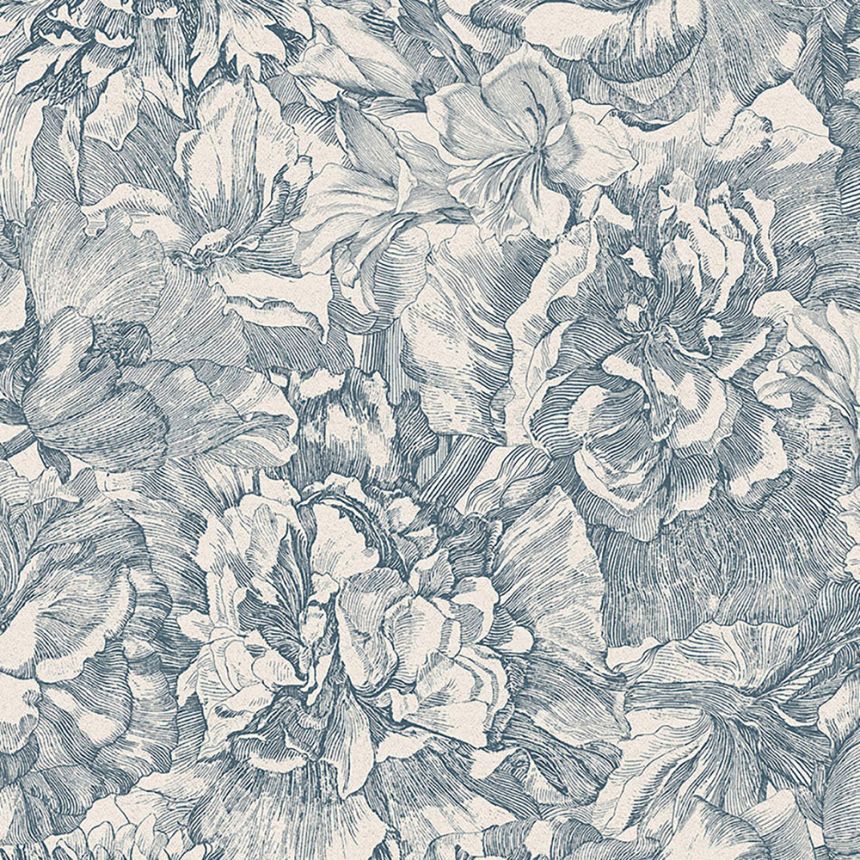 Non-woven wallpaper, blue-brown, leaves, feathers, ROM203, Romance, Masureel Non-woven wallpaper, blue-brown, leaves, feathers, ROM203, Romance, Masureel