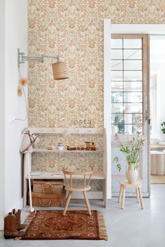 Floral non-woven wallpaper, beige, 139566, Bloom, Esta Home Floral non-woven wallpaper, beige, 139566, Bloom, Esta Home
