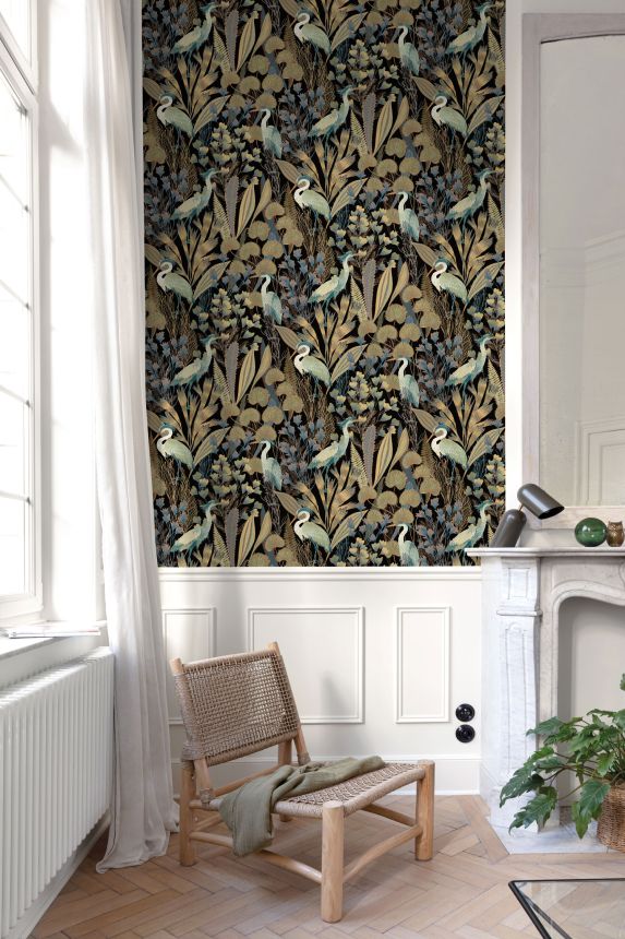 Ocher wallpaper with twigs and leaves, 333525, Festival, Eijffinger Ocher wallpaper with twigs and leaves, 333525, Festival, Eijffinger