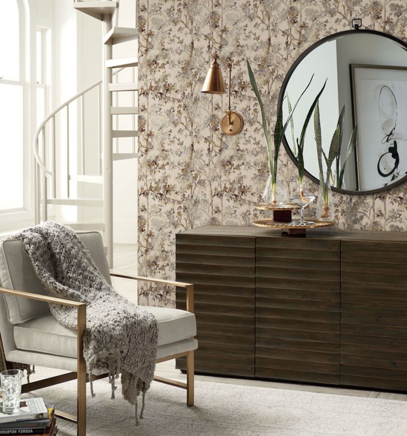 Grey-beige non-woven wallpaper with silver twigs DD3815, Dazzling Dimensions 2, York Grey-beige non-woven wallpaper with silver twigs DD3815, Dazzling Dimensions 2, York