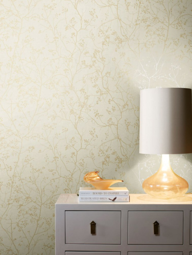Cream non-woven wallpaper with golden twigs DD3812, Dazzling Dimensions 2, York Cream non-woven wallpaper with golden twigs DD3812, Dazzling Dimensions 2, York