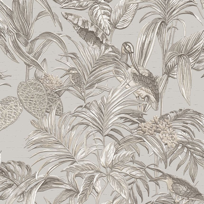 Non-woven beige wallpaper, leaves TA25060 Tahiti, Decoprint
