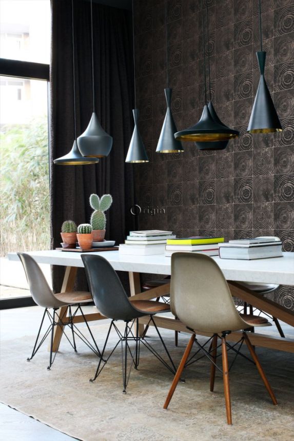 Black-brown non-woven wallpaper, imitation wood with annual rings 347550, Matières - Wood, Origin Black-brown non-woven wallpaper, imitation wood with annual rings 347550, Matières - Wood, Origin