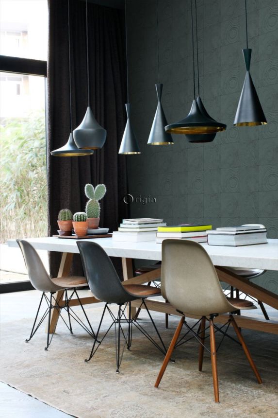 Green-black non-woven wallpaper imitation wood, boards 347536, Matières - Wood, Origin Green-black non-woven wallpaper imitation wood, boards 347536, Matières - Wood, Origin