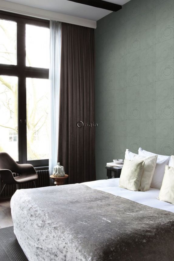 Green non-woven wallpaper, imitation wood with annual rings 347547, Matières - Wood, Origin Green non-woven wallpaper, imitation wood with annual rings 347547, Matières - Wood, Origin