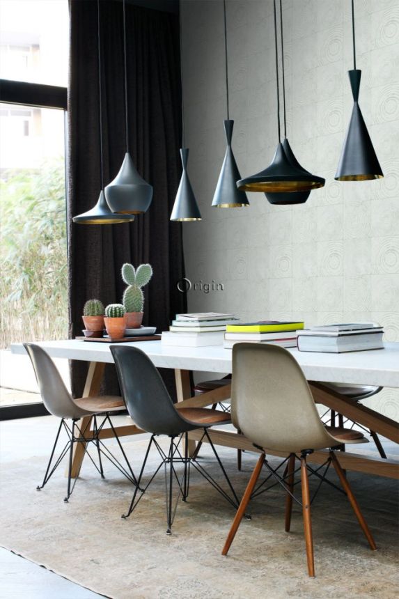 Gray-white non-woven wallpaper, imitation wood with annual rings 347546, Matières - Wood, Origin Gray-white non-woven wallpaper, imitation wood with annual rings 347546, Matières - Wood, Origin