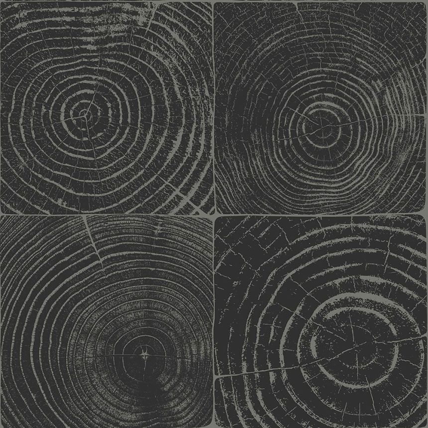 Black and silver non-woven wallpaper, imitation wood with annual rings 347544, Matières - Wood, Origin Black and silver non-woven wallpaper, imitation wood with annual rings 347544, Matières - Wood, Origin