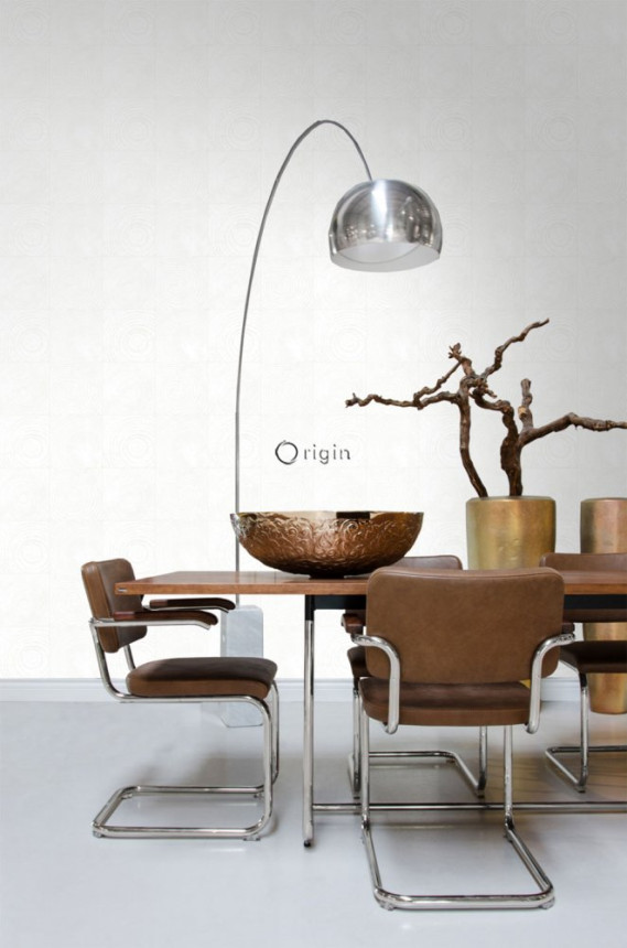 Non-woven wallpaper white, imitation wood with annual rings 347543, Matières - Wood, Origin Non-woven wallpaper white, imitation wood with annual rings 347543, Matières - Wood, Origin