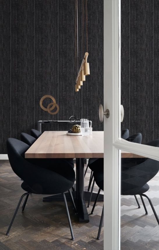 Metallic black and silver non-woven wallpaper, imitation wood, boards 347552, Matières - Wood, Origin Metallic black and silver non-woven wallpaper, imitation wood, boards 347552, Matières - Wood, Origin