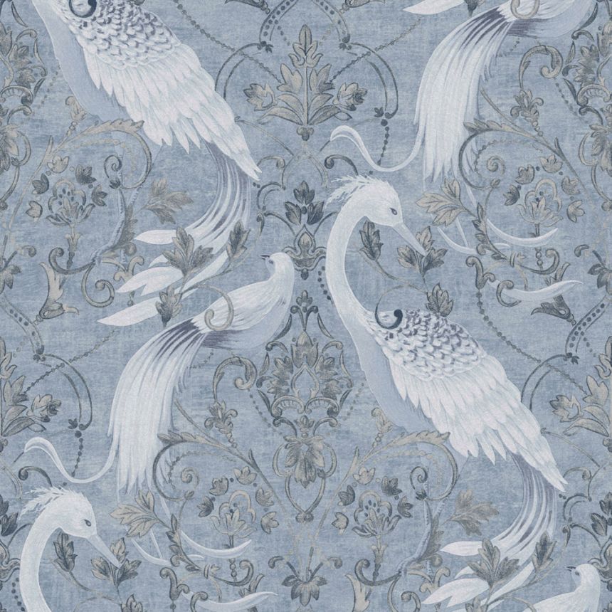 Blue-white wallpaper, birds, plants, leaves, 120881, Joules, Graham&Brown Blue-white wallpaper, birds, plants, leaves, 120881, Joules, Graham&Brown