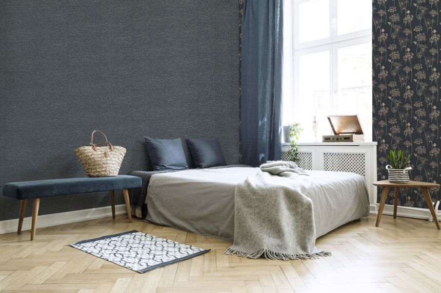 Black wallpaper, fabric imitation, CLR018, Spirit of Nature, Khroma by Masureel
