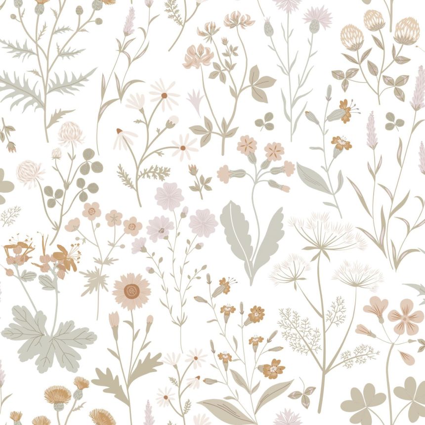 White wallpaper, meadow flowers, 139482, Vintage Flowers, Esta Home White wallpaper, meadow flowers, 139482, Vintage Flowers, Esta Home