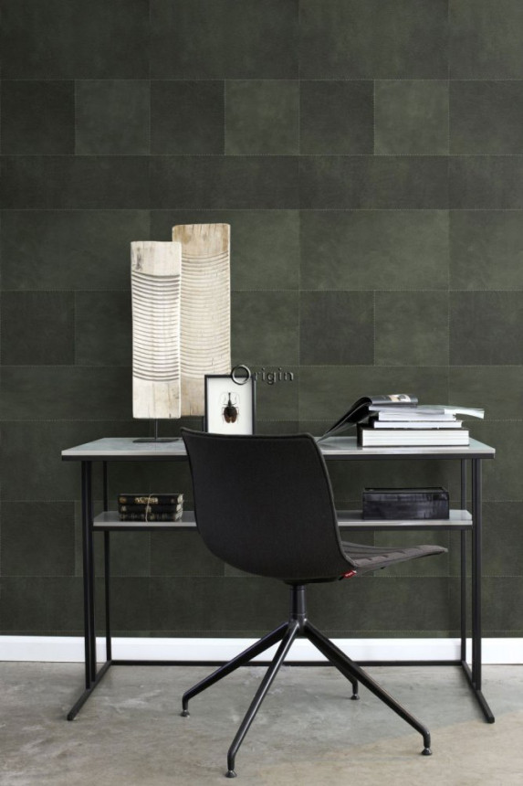 Dark green non-woven wallpaper, parquet leather pattern 347796, Luxury Skins, Origin Dark green non-woven wallpaper, parquet leather pattern 347796, Luxury Skins, Origin
