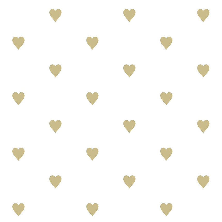 White non-woven  wallpaper with golden hearts 347679, Precious, Origin White non-woven  wallpaper with golden hearts 347679, Precious, Origin