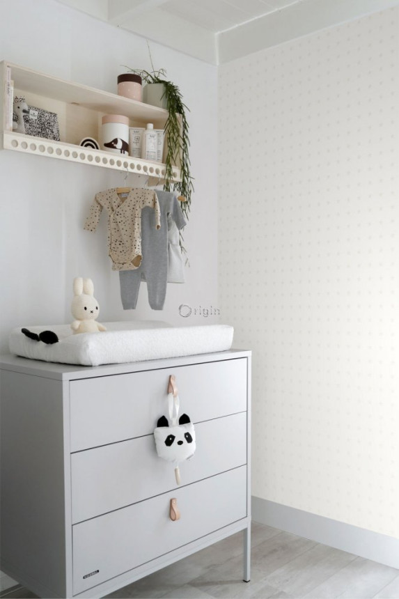 Non-woven wallpaper - white dots on a beige metallic background 346817, Precious, Origin Non-woven wallpaper - white dots on a beige metallic background 346817, Precious, Origin