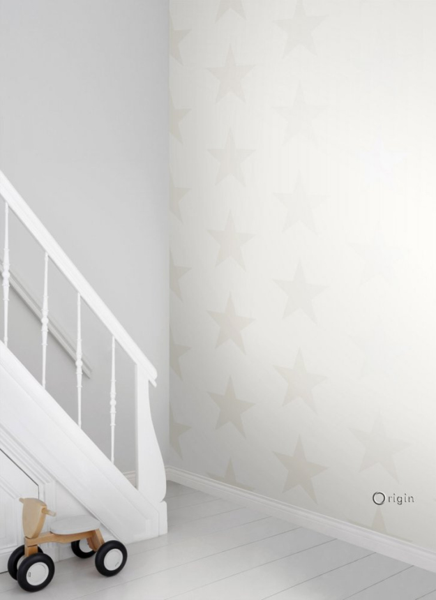 White non-woven wallpaper with beige stars 346824, Precious, Origin White non-woven wallpaper with beige stars 346824, Precious, Origin