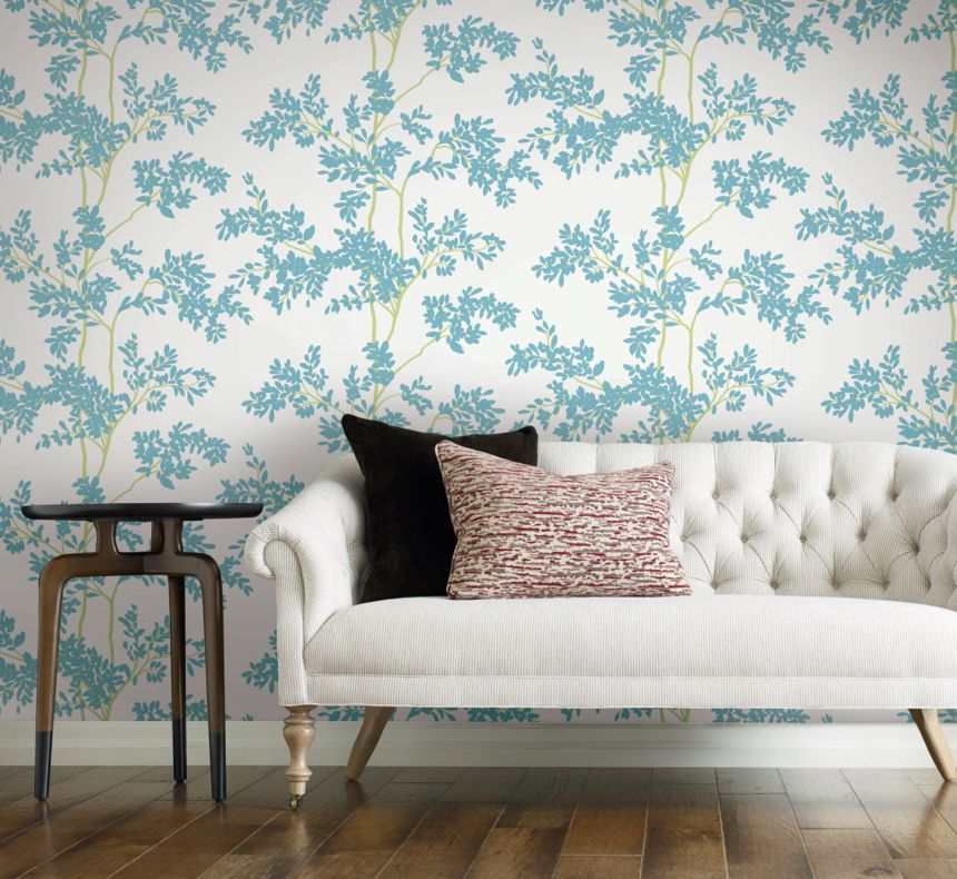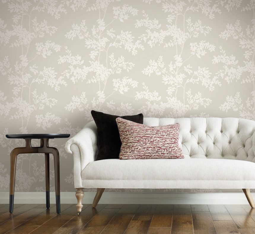 White non-woven wallpaper with branches, BL1803, Blooms Second Edition Resource Library, York White non-woven wallpaper with branches, BL1803, Blooms Second Edition Resource Library, York