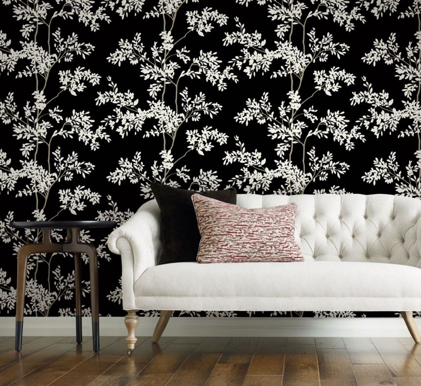 Black and white wallpaper with branches, BL1804, Blooms Second Edition Resource Library, York Black and white wallpaper with branches, BL1804, Blooms Second Edition Resource Library, York