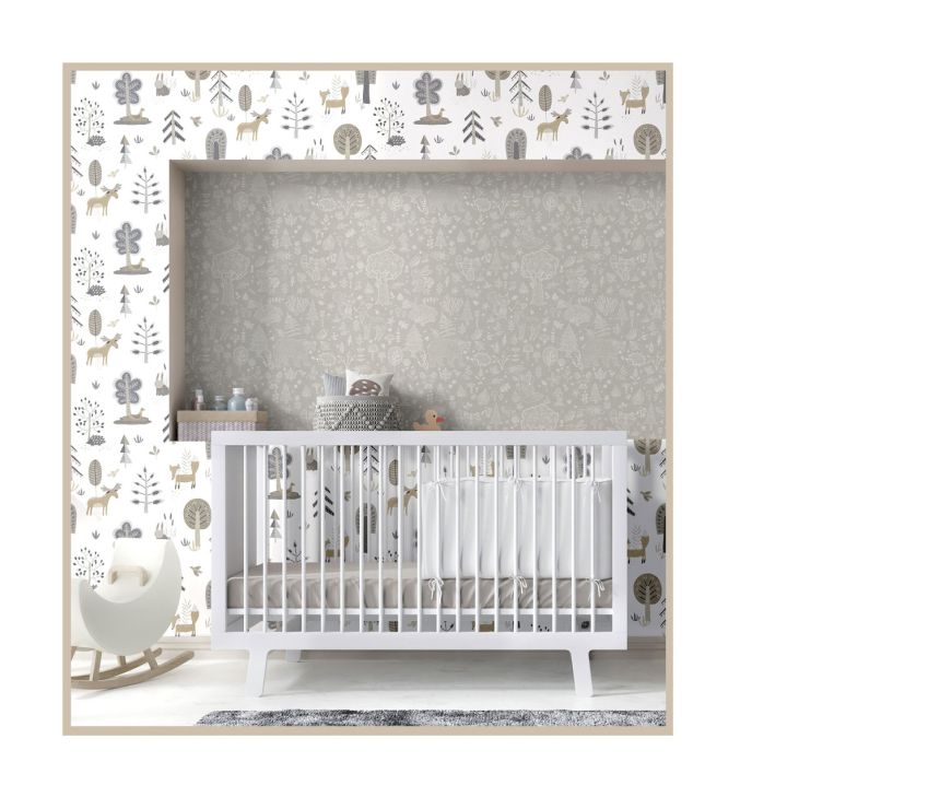 Gray children's wallpaper, animals, plants, 14807, Happy, Parato Gray children's wallpaper, animals, plants, 14807, Happy, Parato