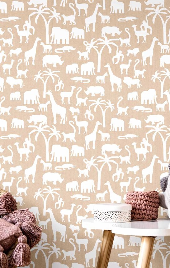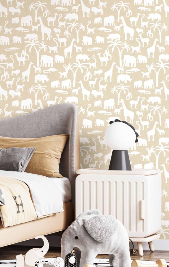 Beige children's wallpaper with animals, 17119, MiniMe, Cristiana Masi by Parato Beige children's wallpaper with animals, 17119, MiniMe, Cristiana Masi by Parato