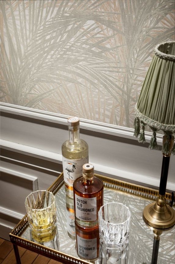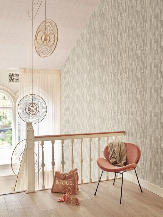 Gray-beige wallpaper with leaves, RE25150, Reflect, Decoprint Gray-beige wallpaper with leaves, RE25150, Reflect, Decoprint