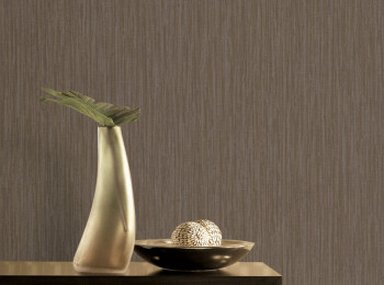 Brindle non-woven wallpaper in brown shades with a metallic sheen, a coarser fabric structure. Easily combine with related patterns.