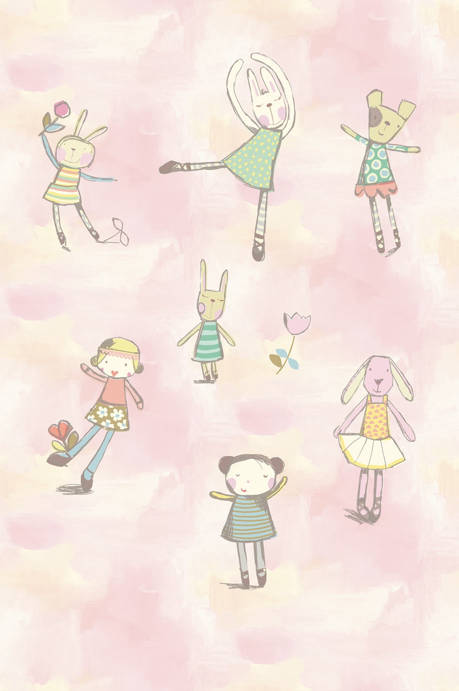 Wallpaper with animal ballerinas on a pink background - a cheerful wall mural for the smallest children.