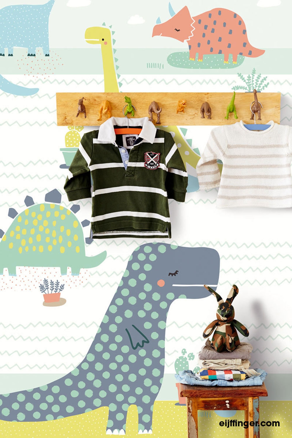 Cartoon dinosaurs in soft pastel colors. Wall mural for the smallest children.